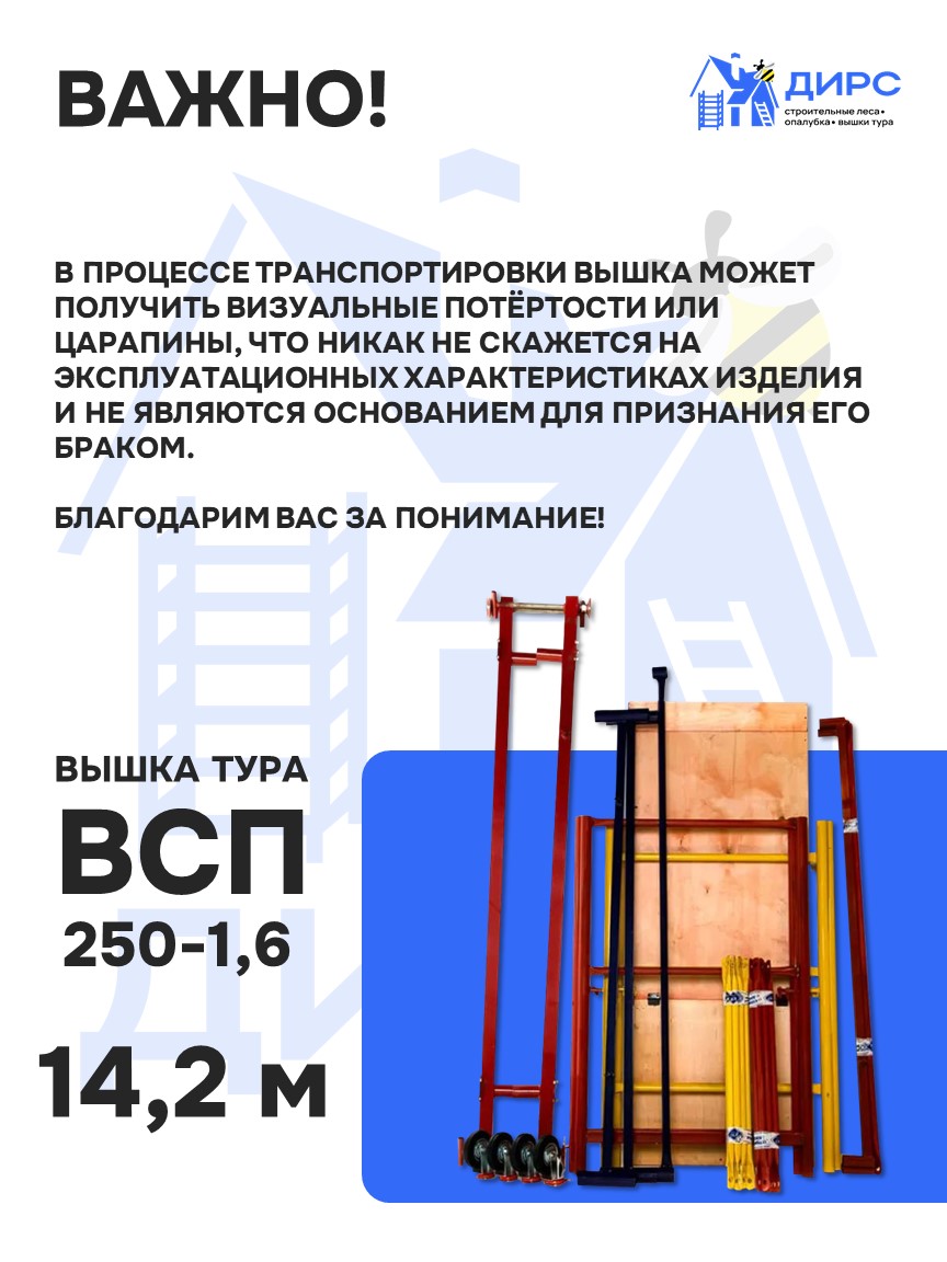 Вышка тура ВСР-1 рабочая высота 8,4 м, базовый блок + 5 секций промежуточных