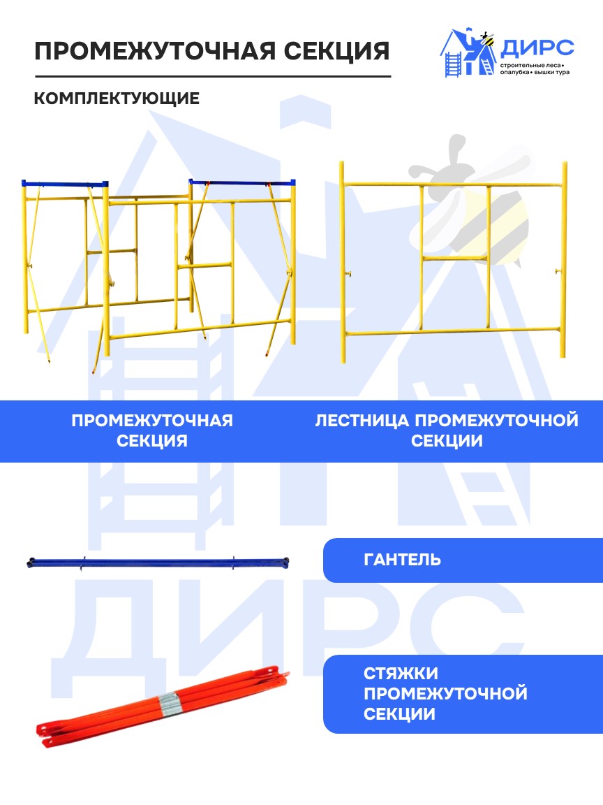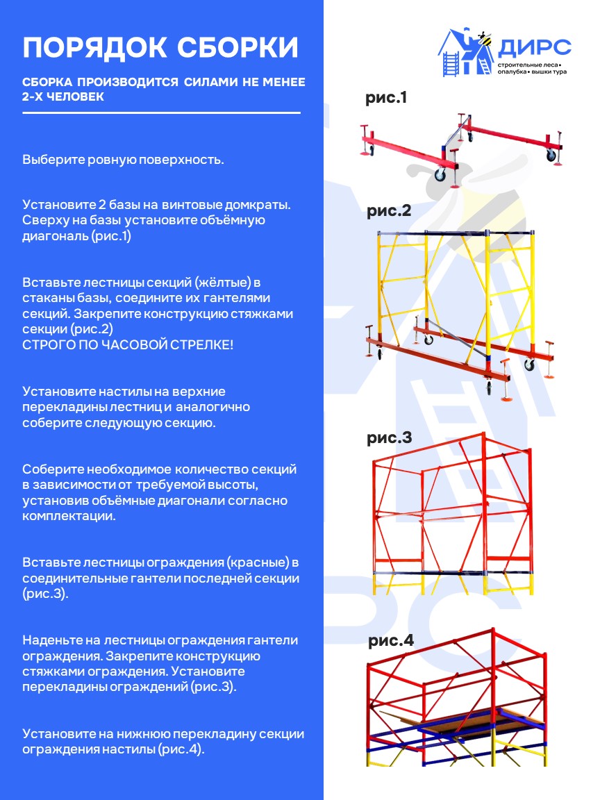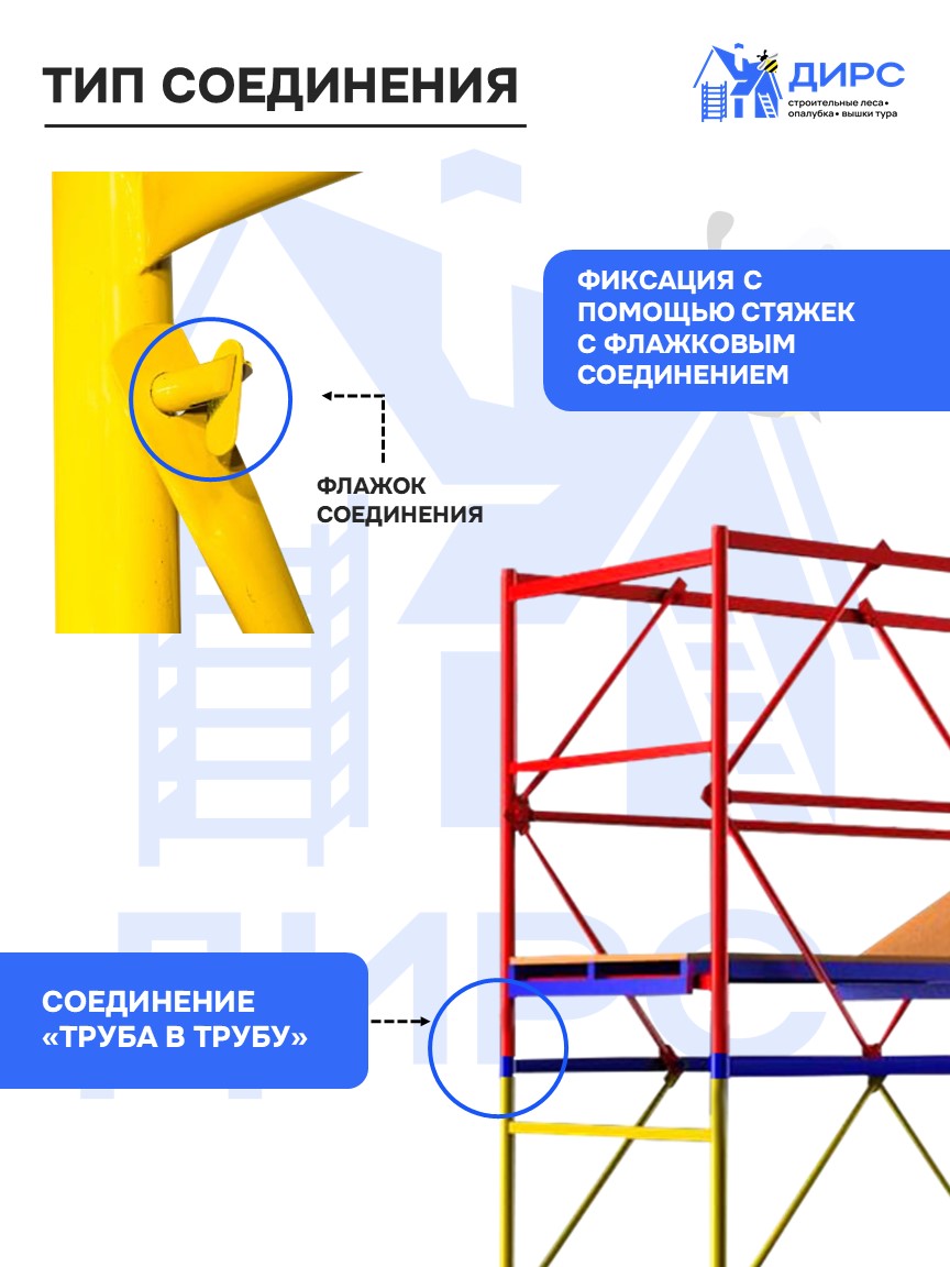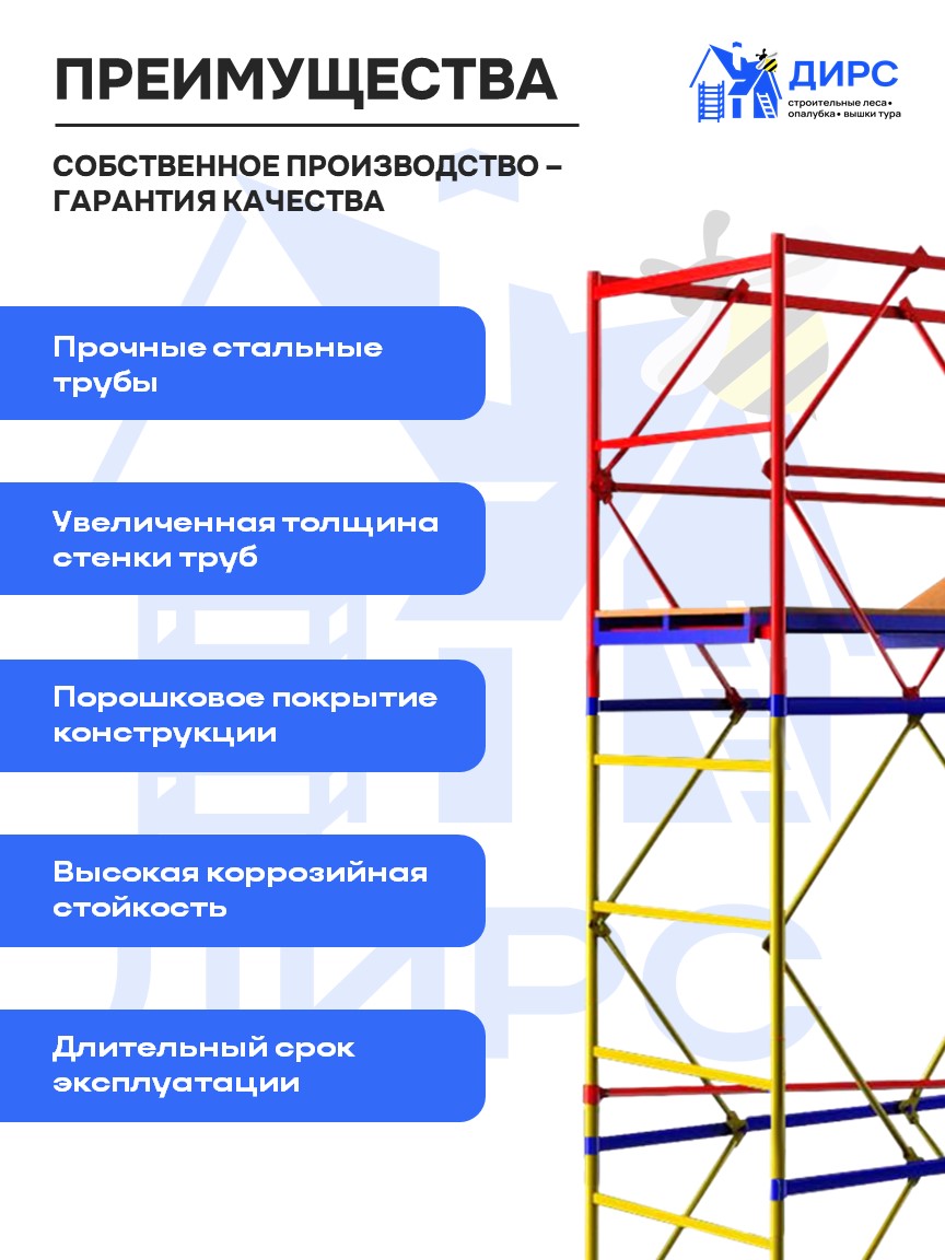 Вышка тура ВСР-1 рабочая высота 4,7 м, базовый блок + 2 секции промежуточные
