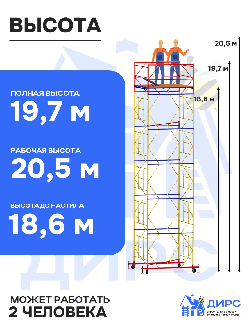 Вышка тура УЛТ-200 рабочая высота 21,4 м, 17 секций