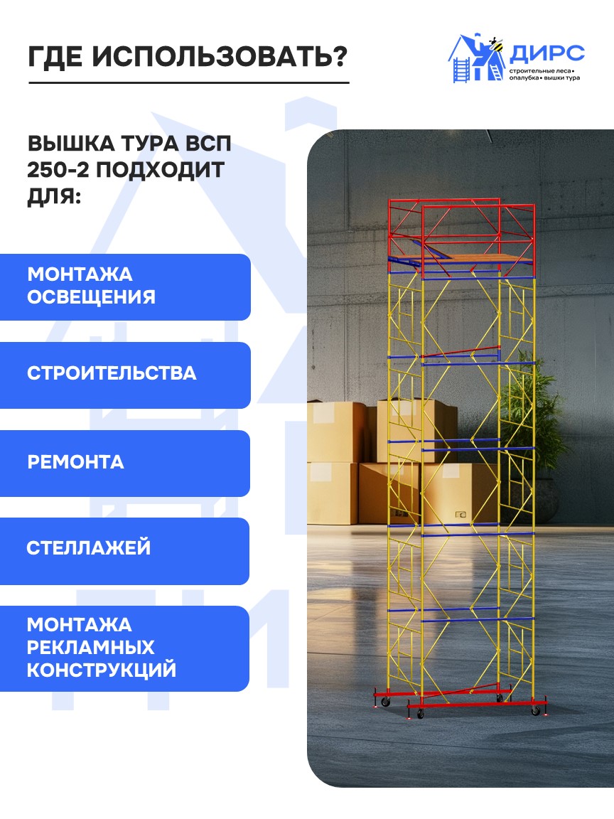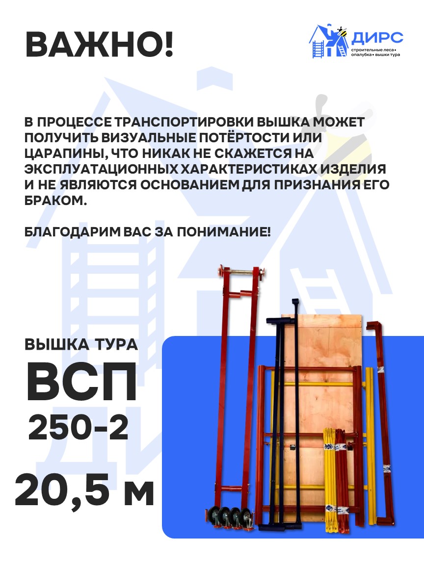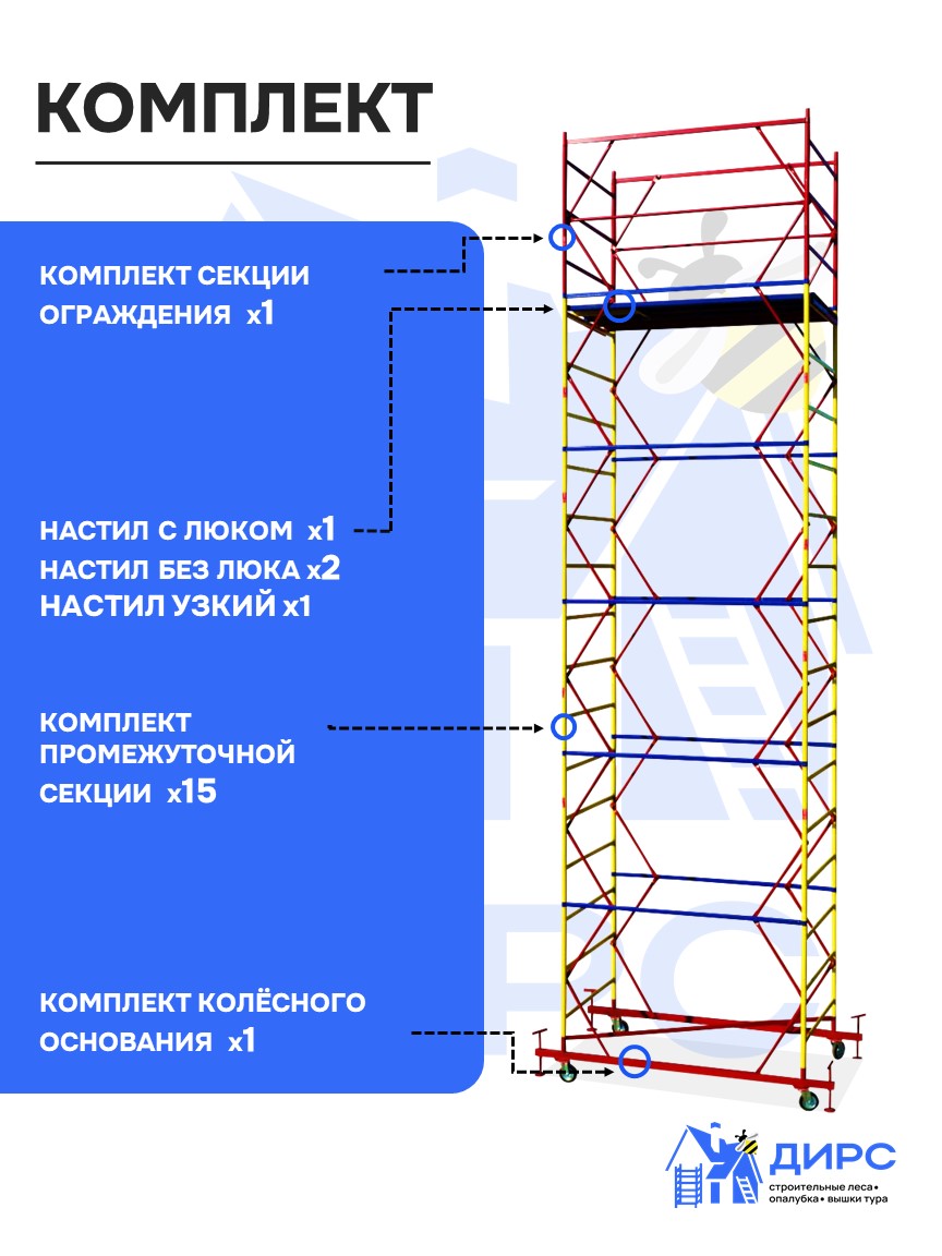 Вышка тура ВСР-1 рабочая высота 8,4 м, базовый блок + 5 секций промежуточных